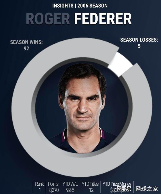 尽管四巨头中只有德约科维奇仍在比赛,辛纳和阿卡正在成为统治者,但数据极客和专家经常喜欢将这位双子星明星与这四位老将进行比较。关公和秦琼我们先不说。我们先看数据,看看四者中哪一个在单个历年中最强。 Tennisinsights 的网球大数据列出了四大巨头的标志性赛季数据,并按球场类型和赛事级别进行了细分。我们来看一下:2006赛季,费德勒胜率高达94.8%,开局取得16连胜,最终夺得三个大满贯冠军。 2004年赢得澳大利亚网球公开赛后,他开始了长达四年多的世界排名第一的统治。这位瑞士天王今年达到了个人表现的巅峰,获得了12次冠军。赛季总战绩为92胜5负,总得分超过8000分,大满贯几乎占据了一半,3,700点。从积分结构来看,硬地球场有5,495分,而红土球场只有1,400分。事实上,不一定有大量的参与者才能被认为是成功的。 2015赛季,德约科维奇的胜率高达93.2%。他在除一项赛事外的所有赛事中都进入了决赛,并赢得了三项大满贯赛事。相比2011和2021赛季,德约科维奇的2015赛季更加成功。今年,除了年终总决赛和中国公开赛夺冠之外,他还以3个大满贯冠军和1个亚军、6个大师赛冠军和2个亚军(其中他只参加了8个)开启了无敌状态。他全年参加了16场比赛,取得了11场胜利和4次亚军的成绩。他们全年总共输掉了六场比赛,但他们的主要竞争对手费斯德勒独自赢得了三场比赛。今年他达到了 16,585 分,这是有史以来任何人超越的最高分。在2010赛季, Nadal had a winning percentage of 87.7%, won all of his matches on clay, and won three Grand Slam titles.纳达尔在胜率上可能不如他的两个朋友,但红土之王正在他的后院热切地打球。你将能够实现你想要的一切,并在红土场上保持完全的胜利。这是他职业生涯中唯一一次在一年内夺得三个大满贯冠军。 2016赛季,穆雷以89.7%的胜率夺得奥运金牌。 2016年是他在红土上最好的赛季。穆雷直到2016年之前已经获得了多个大满贯冠军,但由于其他三名选手的实力,他距离世界第一还很远,很难超越他。今年,情况发生了对他们有利的变化。事情立即开始疯狂,年中她赢得了温布尔登并卫冕了她的个人奥运金牌。在比赛的后半段,他开始鞭策自己,在年底的决赛中,他终于成功绕过了弯道,成为了世界第一,并在年底成为了第一。回顾一下,这四章中哪一章最亮眼? (来源:网球之家 作者:罗成启业)