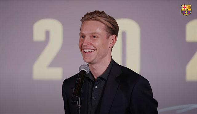与巴塞罗那完成续约后,荷兰中场德容出席了新闻发布会,随后接受了俱乐部官方频道BAR?A ONE的采访。